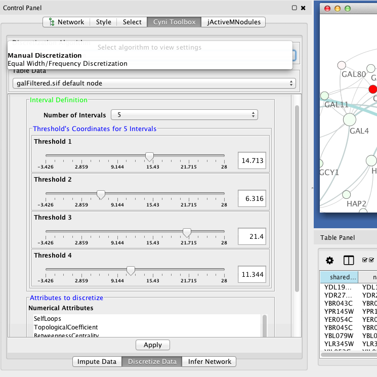 The Cytoscape app Cyni Toolbox puts together several tools that allow infering networks from biological data. Each of the tools can be used independently or together to perform several tasks. The goal of Cyni is to make network inference more accessible to biologists by providing user-friendly solution as well as provide a framework to bio-informaticiens to develop and apply their new techniques. Data imputation and discretization techniques are provided along with several known inference algorithms to make this tool fully operational for any kind inference requirement. While data imputation and discretization techniques allow you modify Cytoscape tables, network inference algorithms produce a new network after applying the chosen technique.
